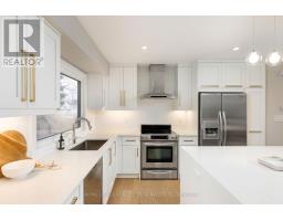 This stunning, fully renovated 3+1 bedroom, 2-bath raised ranch bungalow is ideally located in Burlington's highly sought-after Shoreacres neighbourhood, offering a perfect blend of style, comfort, and commuter convenience. Set on a quiet, walkable street, you are just minutes from Longmoor Park, Nelson Park, and a short stroll to Appleby Plaza, Fortino's, LCBO, popular restaurants, and just down Appleby Line is a small park overlooking Lake Ontario. Schools are nearby, including the #1-ranked Pauline Johnson, and commuters will value the quick 4-minute drive to Appleby GO Station and the QEW/403. The charming exterior boasts oversized windows w/accent shutters, a curved concrete walkway to a custom front door, stone retaining walls, mature landscaping, a double driveway, and an attached double garage w/ inside entry and prewired for an EV charger. The private backyard features a spacious updated deck overlooking a lush lawn, framed by perennial gardens & mature trees and the addition of a new play structure (2021). A professional 2020 renovation delivers wide-plank hardwood floors, sleek modern cabinetry, quartz countertops, designer tiles, smooth ceilings, deep baseboards, upgraded windows, pot lighting, & an oak staircase with black metal railings, and new roof shingles (2025) . The open-concept main area features a sunlit living and dining area and a chef-inspired kitchen with custom cabinetry, under-cabinet lighting, quartz counters, a waterfall island w/ a breakfast bar, and deluxe stainless steel appliances. Three bright bedrooms, including the primary bedroom, & a renovated 4-piece bath complete the main floor. The finished lower level adds a spacious family room w/ a gas fireplace, a fourth bedroom, a stylish 3-piece bath w/ a glass shower, and a large laundry/utility room w/ a new washer and dryer (2025)-ideal for families seeking a move-in-ready home in one of Burlington's most desirable communities. (id:61594)
