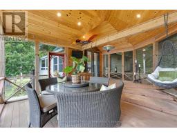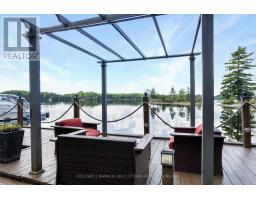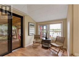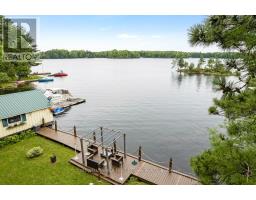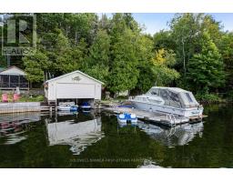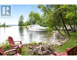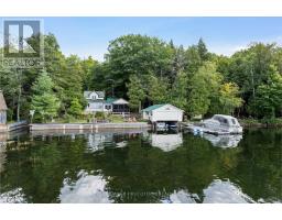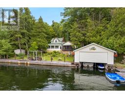 Gracious lakehouse in sheltered cove, on Big Rideau Lake. Facing west for magnificent sunsets, you have 245' of waterfront with sandy beach, floating dock and boathouse with two boat slips and lift. Mature shade trees and landscaped gardens create tranquil calm setting. The lakehouse is idyllic all-year retreat or family home. Welcoming foyer has convenient floor-to-ceiling storage for coats and outside gear. Wrapped in comfort, the living room has fireplace with wood-burning insert and magnificent panoramic views of lake. Living room also has double wide opening to expansive sitting room with flex space and full wall of windows overlooking the lake. Patio doors open to screened sunroom that's perfect for gatherings and informal dining, all the while admiring the lake's natural beauty. Kitchen offers delightfully distinctive decor plus endless storage and prep areas; its full wall of windows runs along the countertop and that open directly to courtyard bistro with BBQ hookup. Off kitchen, Butler's pantry with hook-ups for washer and dryer. Home office, for when you need to connect with outside world. Main floor bedroom and 3-pc bathroom with luxury glass shower of ceramic tile and rain head shower. Upstairs primary bedroom large closet, two-piece ensuite and treasured forever lake views. For guests or extended family, charming bunkie-cabin that overlooks the lake. Guests will be most comfortable as bunkie-cabin has kitchenette, electric fireplace, eating & sleeping areas plus, running water and RV toilet. Other buildings include woodshed & garden shed. Boathouse 29'x32' with hydro, lift, storage area & auto garage door. Aluminum dock with extended floating dock, 6' deep at end. Shoreline sunset deck, firepit & swing. Pristine sandy beach that kids will love. Beach shallow & gradually gets deeper. Hi-speed. Cell service. Located on township maintained road with garbage pickup, mail delivery & school bus pickup. 25 mins Smiths Falls or Perth; 1 hr Kingston or Ottawa. (id:61594)