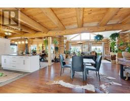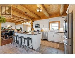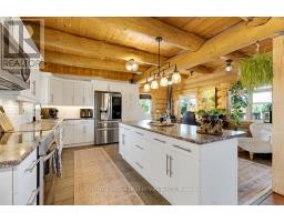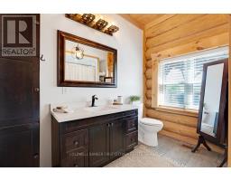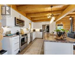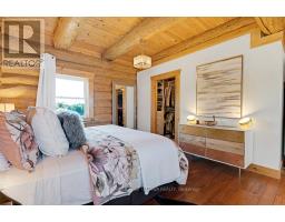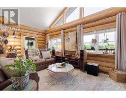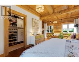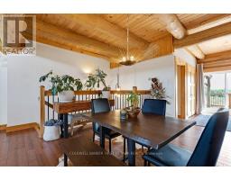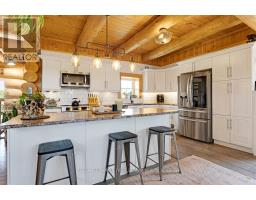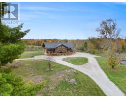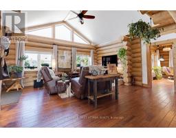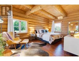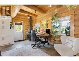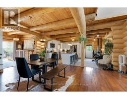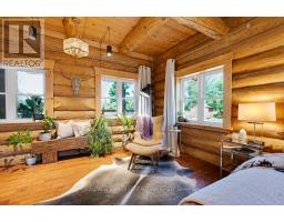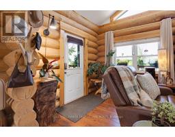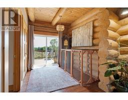 Set along a quiet country road that winds through forest and meadow, this modern log home rests on 2.6 acres near Bennett Lake. Surrounded by a cedar rail fence and open fields, it feels timeless and secluded, with only the soft presence of grazing cattle beyond. The back deck looks across meadow and forest, a perfect vantage for watching mist lift in the morning or autumn colour settle over the treeline. Out front, the verandah invites long evenings with friends, or a quiet soak in the hot tub beneath sunsets and stars. Inside, the home combines the warmth of exposed logs with an open, airy layout rarely seen in traditional log homes. The living room features hardwood floors, a cathedral ceiling, and tall windows that capture soft afternoon light. The kitchen is modern and welcoming, with updated appliances and a large island that's made for sharing meals and conversations. The main floor primary bedroom greets the morning sun and includes a recently added walk-in closet with built-in shelving. Downstairs, the walkout lower level offers ceramic tile floors, radiant heat, pot lights, two more bedrooms, a full bath, and a spacious family or rec room. With its own entrance, its ideal for guests, extended family, or a potential in-law suite. Recent updates include designer lighting, a new wood stove, commercial-grade washer and dryer, and a large Amish-built shed. Bennett Lake is just minutes away for swimming, paddling, and fishing. And for everything else, Perth is a quick 15-minute drive. This is country living with style, comfort, and space to breathe. (id:61594)