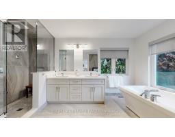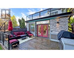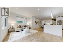 This striking modern residence built in 2020 is located on a 45' x 150' E/W sun-filled lot. Offering a total of 3000 sq ft of living space. Abundance of windows throughout reveal a treed ravine lot & siding onto a quiet parkette. The home is flooded with natural light. Rare 6' x6', 4 season vestibule provides a practical flow into a grand 15' x 8' foyer with 10' ceilings. 2 Expansive 20' x 15' terraces ideal for entertaining or relaxing. Spectacular Primary bedroom & ensuite with extra deep soaker tub, separate steam shower overlooking 2 sided fireplace and sitting area with walk-out access to 2nd floor deck. Maple hardwood floor throughout main & second Floor. Designer kitchen with central quartz island, quartz backsplash, stainless steel appliances, & gas stove, complimented by an outdoor kitchen, ideal setting for morning coffee or entertaining. Incredible tandem heated & air garage that spans the full length of the house with 10 foot ceilings,(internet controlled garage door opener) & space for two vehicles. A total of 3 parking spaces with direct interior access to the home and rear garage door leading to the garden. Additionally, a private separate side entrance to finished lower level with cork flooring, a full four-piece bath- ideal for guest suite, home office/studio. 2 x 6 framing, 4'x2' porcelain tiles throughout all baths. Triple pain windows, upgraded insulation( Rockwool safe & sound, functions as soundproof & fire-resistant material for interior.) Resilient channels on interior walls for tranquil setting. Optional features are 2ND PRIVATE DRIVE, & ROOF TOP TERRACE or SOLAR. Seller built to support roof. Buyer(s), at Buyer expense, to apply & complete, doing their full Due Diligence. PARKING ON STREET with some restricted hours. Conveniently located Steps to transit & quick connections downtown. A home designed for those with a keen eye for architecture, attention to detail & value easy access without sacrificing modern design and style. (id:61594)