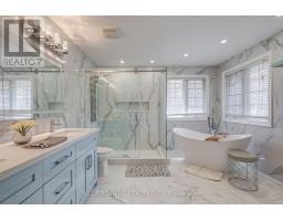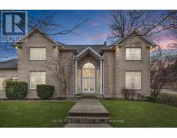 Welcome to this exquisite luxury residence offering over 4,700 SQFT of carpet-free, above-grade living space. Enter through the grand double doors into the breathtaking two-storey foyer, adorned with a glamorous crystal raindrop chandelier. High ceilings, real hardwood and valence lighting define the main level, which features a sunken living room with direct access to the rear yard, a dining area with a bay window, and a versatile flex room perfect as an office or an additional bedroom. The chefs eat-in kitchen showcases quartz countertops, full-height cabinets with decorative lighting, built-in stainless steel appliances (including a separate fridge and freezer, gas cooktop with hide-away downdraft, bar fridge, and an island with seating for four). The main floor also includes a large laundry room accessible from the heated/cooled three-car garage, and two powder rooms. Upstairs find five generously sized bedrooms, most of which do not share any direct walls. While the primary suite impresses with an electric fireplace, valence lighting, dual closets, and spa-like 5-piece ensuite bathroom, the other bedrooms are also sizeable; one has its own private 5-piece ensuite as well while another has a 5-piece cheater ensuite. The full 2,200 SQFT unfinished basement, professionally waterproofed with dual sump pumps and rough-in bathroom, awaits your vision. Outside, the concrete and interlocking brick driveway accommodates up to 7 additional vehicles. This stunning home is perfectly located near Victoria Hospital, Wortley Village, Highland Golf & Curling Club, the 401, and downtown, this is luxury living redefined. (id:61594)