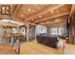 Tucked along a picturesque, winding country road, this 6.69-acre true post-and-beam home is a place where comfort, character, and nature come together. Exposed timber framing, rich wood accents, and peaceful views in every direction create a warm, welcoming atmosphere from the moment you arrive. The main floor offers a spacious living room for gathering, a bright kitchen, cozy den, and convenient 2-piece bath. Upstairs, you'll find four generous bedrooms and two full baths, including a relaxing primary suite with a large ensuite and walk-in closet. The lower level features a large family rec room with walk-out to a lower patio; perfect for movie nights, play space, or quiet evenings outdoors. Surrounded by ravine, mature trees, Catfish Creek, and endless wildlife, this is a home meant to be enjoyed in every season. Just minutes from Port Bruce beach and a short drive to Aylmer or St. Thomas, it's an ideal setting to slow down, connect, and create lasting family traditions. Energy-efficient geothermal heating and municipal water complete this special country retreat. (id:61594)