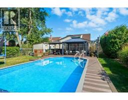 Welcome to this charming and deceptively spacious 1.5 storey home, ideally situated on a generous 51' x 150' lot in the heart of Hamilton Mountain, in the highly sought-after Macassa neighbourhood! Lovingly cared for and meticulously maintained by the same owner for the past 43 years, this home is a rare gem offering timeless character, thoughtful updates, and room for the whole family! Step inside to discover an oversized dining room perfect for hosting family gatherings and a beautifully updated kitchen featuring granite countertops, stainless steel appliances, and a stylish breakfast bar. The main floor also boasts an expansive primary bedroom with a cozy sitting area, complemented by a modern main 4-piece bathroom. The true showstopper of this home is the stunning family room addition, complete with a warm gas fireplace, pot lights, and an exposed brick feature wall that brings both warmth and character. From here, walk out to the fabulous 3-season sunroom an ideal spot for relaxing or entertaining which then leads to your private backyard oasis. Enjoy maintenance-free composite decking, a fabulous gazebo, three storage sheds, a hot tub, and a sparkling onground pool all surrounded by meticulously landscaped gardens that create a peaceful and picture-perfect retreat. There is a basement under the original home offers full ceiling height and features a finished rec room, home office, and an additional 3-piece bathroom. Located just minutes from all amenities, schools, parks, public transit, and with easy access to the Linc, Red Hill, and Highway 403! This incredible family home truly has it all! Don't miss your chance to own this exceptional property! Book your private showing today! (id:61594)