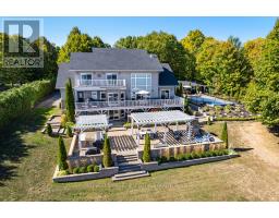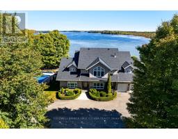 Harmonious curb-appeal of this home is only the beginning of the luxury lifestyle it promises. With 3.8 acres on Otter Lake, spacious 5+2 bedrm, 5 bathrm walkout home has attached double garage & single garage. Surrounded by exquisite landscaping and resort-like amenities, every detail of the home is impressive balance of refined elegance and family comfort. Foyer's cathedral ceiling, along with ceramic floor & closet, creates grand entry. French door opens to den for quiet times. Livingroom 18' ceiling and showcase wall of windows with magnificent lake views, including inspiring sunrises. Centering the room is soaring floor-to-ceiling stone propane fireplace. Patio doors open to expansive deck for continuous outdoor living. Dining room set into windowed alcove, with sunrise views over lake. Dining room open to kitchen, with patio doors to deck. Warmly welcoming kitchen has select maple cabinetry, quartz counters, subway backsplash, breakfast bar & desk station. Laundry room full of conveniences with sink, cabinets and folding counter. Main floor light-filled primary suite has double closet, all updated 2022. Luxurious 5-pc bathroom features dressing room with amazing wall of custom closets, quartz two sink vanity and separate area for soaker tub plus glass shower with body spa spray. Upstairs four bedrooms, two with patio doors to balcony. Second floor 3-pc bathrm & 4-pc bathrm. Walkout lower level family room and two bedrms are above ground for airy bright spaces. Lower level media room and 3-pc bathroom. Expansive lower patio extends into two symmetrical pergolas, one for lounging in front of a fireplace and other for dining with outside kitchen. Inground 2021 heated salt-water pool. Sauna & hot tub. New 2024 architectural roof shingles. New 2023 auto Generac. Kodiak 2022 storage shed. Waterfront 150', approx 5' deep at end of dock. Hi-speed & cell service. On township maintained road with mail delivery, garbage pickup & school bus. 20 mins Perth or Smiths Falls. (id:61594)