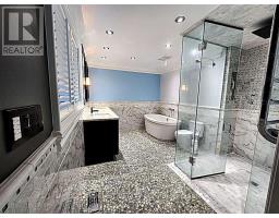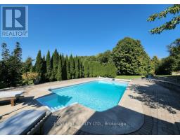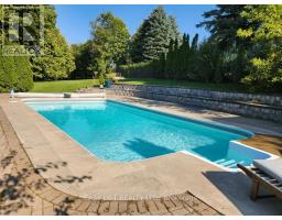 For more info on this property, please click the Brochure button. A sprawling 4,400 sf raised bungalow, recently renovated and set among the prestigious homes of Mill Run Golf Course Estates, sits on over an acre with an attached insulated 2-car garage and beautifully landscaped grounds featuring new and mature trees for exceptional privacy. The dream kitchen is designed for the true chef, showcasing a uniquely veined stone waterfall island, countertops, and counter-to-ceiling backsplash, appliance garage, three sinks with spray faucets, soap dispensers, filtration faucets, and all appliances under warranty including refrigerator, 6-burner propane range, dishwasher, and microwave. The kitchen opens to a stunning Great Room (28x25 sf) with 11+ ft vaulted ceilings and a framing beam with roughed-in fireplace, offering true open-concept living. A convenient 2-piece powder room is located off the Great Room. The main level offers two Master Bedrooms with walk-in closets and sound/fireproof insulated walls. The Primary features an east-facing walkout to deck and a luxurious 6-piece ensuite with roll-in glass shower, digital rain system with jets, soaker tub, heated river rock flooring, marble finishes, heated towel rack, and raised European toilet. The second Master includes a 5-piece ensuite with heated flooring and roll-in shower. A third bedroom with east and south exposure doubles as a bright home office. The lower level includes a second Great Room, full kitchen with quartz waterfall island and radiant heated floors, private patio entry, two large bedrooms with walk-ins, and a deluxe marble 5-piece bath, ideal for an in-law or rental suite. Premium features include custom mouldings, California shutters, triple-glazed Energy Star windows, whole-home air purification, advanced water filtration, tankless hot water, central air, vacuum, and a heated saltwater pool. This exceptional property must be experienced to be fully appreciated. (id:61594)