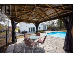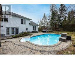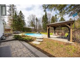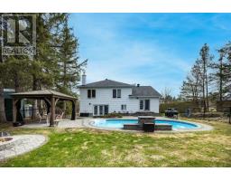 Exceptional estate living on a rare ravine lot & in-ground pool! This beautifully maintained 3-bedrm split-level home sits on a generous 125' x 340' lot and showcases a striking white stone façade that enhances its curb appeal. Inside, you'll find hardwood & ceramic flooring throughout, 2 full bathrooms-including an updated main bath w/a stunning ceramic & glass shower-and a functional layout ideal for families. The inviting family room features a wood-burning fireplace and patio doors with direct access to the backyard, creating a warm and welcoming space. The fully finished basement offers a spacious recreation room, sound-treated music studio (Through bsmt: Roxul insulation, acoustic ceiling tiles, resilient channel, wired for speakers), and a dedicated storage/mechanical room for added functionality and organization. The kitchen is well-appointed w/ gas cook top, built-in oven & dishwasher. Additional features include central vacuum, alarm system, air exchanger, EV charging plug & 2023 furnace (A/C 2006). Step outside to your private oasis-accessible from patio doors-featuring beautiful interlock terraces, a 14' x 12' screened cedar gazebo, and a cozy exterior fireplace. Enjoy the 30' x 15' saltwater in-ground pool (2016) with natural gas heater and robotic cleaner, all within a fenced area of approximately 50' x 50'-ideal for families or pets. For hobbyists or additional storage, the property features a 19.5' x 19.5' insulated & heated double garage, a 35' x 15' exterior garage w/electricity (2022), a 10' x 8' pool shed & Generlink hookup. Shingles approximately 10 years old (30-year shingles).A rare opportunity to own a turnkey home combining comfort, functionality & resort-style living in a sought-after estate subdivision. 24 Hours Irrevocable on all offers. (id:61594)
