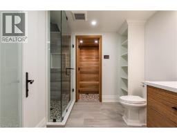 Beautifully built and impeccably finished, this custom residence offers more than 6,700 square feet of living space in one of Oakville’s most sought-after neighbourhoods. Stone construction, a solid wood entry door, heated garage floors, and timeless architectural detailing set the tone for the quality found throughout the home. Inside, the foyer features heated marble tile, plaster crown mouldings, poplar baseboards, and sightlines that lead into bright, open spaces. A dramatic dining room anchors the main level with a soaring skylight, custom wall panelling, integrated speakers, and carefully curated lighting. The chef’s kitchen is designed with extensive custom cabinetry, quartz countertops, a large island, and easy flow to the family room. The servery and mudroom connect seamlessly; each finished with thoughtful storage and heated floors. Upstairs, all four bedrooms are generously scaled and feature private ensuite baths. The primary suite includes a fireplace, custom walk-in closet, and a beautifully coordinated ensuite with heated floors, a freestanding tub, glass shower, and frosted-glass water closet. A full-size laundry room with cabinetry and folding space completes this level. The lower level offers exceptional versatility with radiant in-floor heating, two additional bedrooms, a three-piece bath with sauna, a recreation room with fireplace, a wet bar/kitchen setup, and a dedicated theatre room beneath the back porch. Wide walk-up access brings in natural light and creates an ideal in-law or extended-family space. Outdoors, the large stone terrace features a gas fireplace and outdoor kitchen with built-in BBQ, extending the home’s entertaining potential. Motorized blinds, CAT-6 wiring, solid core doors, and an oak staircase with glass panels highlight the home’s elevated craftsmanship. With top-ranked schools, shopping, GO access, and major highways nearby, this is a quality home in a prime location. (id:61594)