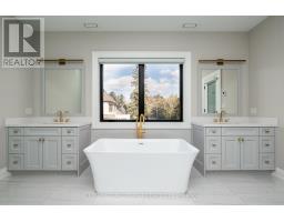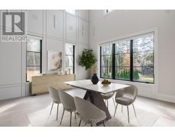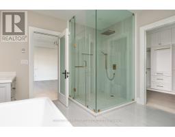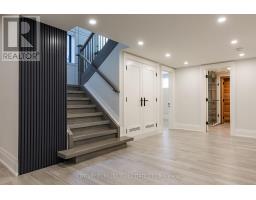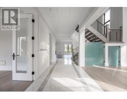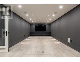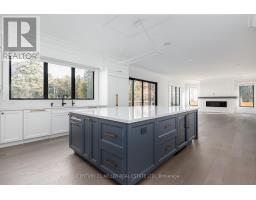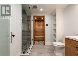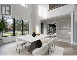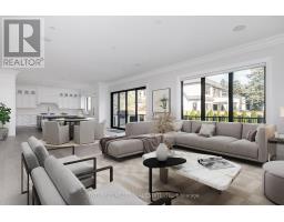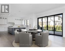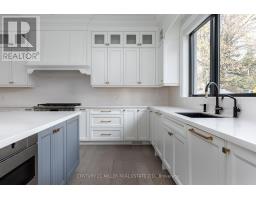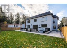 Beautifully built and impeccably finished, this custom residence offers more than 6,700 square feet of living space in one of Oakville's most sought-after neighbourhoods. Stone construction, a solid wood entry door, heated garage floors, and timeless architectural detailing set the tone for the quality found throughout the home. Inside, the foyer features heated marble tile, plaster crown mouldings, poplar baseboards, and sightlines that lead into bright, open spaces. A dramatic dining room anchors the main level with a soaring skylight, custom wall panelling, integrated speakers, and carefully curated lighting. The chef's kitchen is designed with extensive custom cabinetry, quartz countertops, a large island, and easy flow to the family room. The servery and mudroom connect seamlessly; each finished with thoughtful storage and heated floors. Upstairs, all four bedrooms are generously scaled and feature private ensuite baths. The primary suite includes a fireplace, custom walk-in closet, and a beautifully coordinated ensuite with heated floors, a freestanding tub, glass shower, and frosted-glass water closet. A full-size laundry room with cabinetry and folding space completes this level. The lower level offers exceptional versatility with radiant in-floor heating, two additional bedrooms, a three-piece bath with sauna, a recreation room with fireplace, a wet bar/kitchen setup, and a dedicated theatre room beneath the back porch. Wide walk-up access brings in natural light and creates an ideal in-law or extended-family space. Outdoors, the large stone terrace features a gas fireplace and outdoor kitchen with built-in BBQ, extending the home's entertaining potential. Motorized blinds, CAT-6 wiring, solid core doors, and an oak staircase with glass panels highlight the home's elevated craftsmanship. With top-ranked schools, shopping, GO access, and major highways nearby, this is a quality home in a prime location. (id:61594)