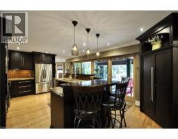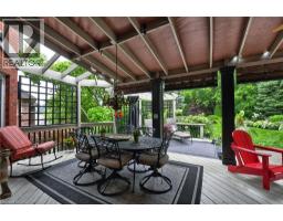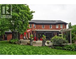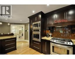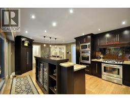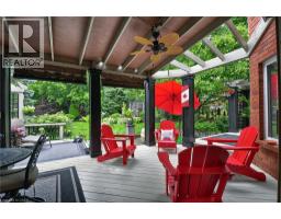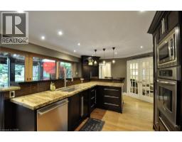 This stunning custom-built executive home blends charm, elegance, and everyday comfort. Nestled in one of Kitchener's most desirable areas near the Grand River and walking trails, it sits on a private, professionally landscaped lot with a park-like setting an entertainer's dream. A major exterior renovation was completed in October 2024, featuring a new 50-year shingled roof, new ridge-venting, new eaves, soffits, fascia, full attic insulation, chimney re-pointing with custom cap, rebuilt cedar porch with pillars, shutters, window boxes, Hinkley lighting, and a new custom Masonite front door with sidelights (July 2025). These updates elevate both curb appeal and peace of mind. Inside, natural light floods the home through the new entryway and detailed colour updates. The newly updated staircase is stunning and invites you to explore further. Venture into the custom-designed gourmet kitchen with granite counters, built-ins, and 20' Anderson doors opening to lush gardens and updated 3-tiered deck designed for beautiful daytime to stunning night entertaining. The dining room features custom cabinetry and beautiful chandelier, opening to the large and spacious formal living room, while the family room offers a cozy wood-burning fireplace. A custom laundry room with quartz counters and Miele appliances completes the main floor. Upstairs, the master retreat includes a spa-like ensuite, new skylight, California shutters, and a dream walk-in closet with custom storage and lighting. Two additional spacious bedrooms share a five-piece bath with luxury finishes. Bathrooms throughout feature custom cabinetry, granite or quartz counters, soaker tubs, and glass showers. The basement includes a bedroom and awaits your finishing touch. The garage is fully upgraded with epoxy floors, heater, EV charger, new custom doors and opener-perfect for the car enthusiast! This home not only offers timeless elegance and thoughtful upgrades, but also worry-free living for years to come. (id:61594)