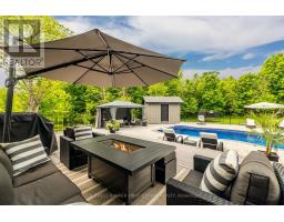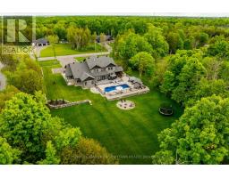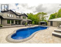 Welcome to this thoughtfully designed, newly built luxury home crafted for ideal multi-generational living. Set on two acres of lush green space and surrounded by mature forest, the property features two distinct residences, each with its own private entrance and garage.The main home makes a striking first impression with its charming wraparound porch and serene natural setting. Inside, the smart and spacious layout includes a main-floor office or den, a grand family room, and a light-filled kitchen with expansive windows that frame uninterrupted views of the outdoors.Every detail has been carefully curated from custom built-ins and elegant trim to radiant in-floor heating and upscale lighting. Upstairs, you'll find four generous bedrooms and three full bathrooms, including a luxurious primary suite and a convenient Jack-and-Jill bath.The fully finished lower level is an entertainers dream, featuring a large rec room ideal for movie nights or game day, a dedicated home gym, an additional bedroom, and a full bath all with heated flooring for year-round comfort.The secondary dwelling offers true bungalow-style living with a main-floor primary bedroom, a spacious laundry/mudroom off the garage, a full bath, and direct access to the shared backyard. Downstairs, a large rec room and bonus room offer flexible space for guests, hobbies, or additional living.Step outside to your private backyard retreat fully landscaped and complete with a 16 x 40 in-ground pool, composite decking, screened-in porch, pool shed, interlock patio, wrought iron fencing, and an elevated fire pit area perfect for summer days and starlit evenings. (id:61594)