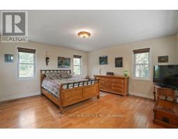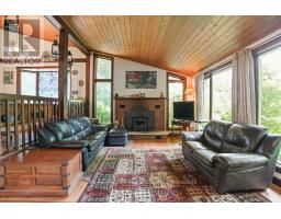 Escape to your own private retreat, surrounded by lush greenery. Set on an ultra rare 407x179 ft lot (1.69 acres), this charming five-bedroom, two-bathroom residence offers a harmonious blend of character and modern comfort, perfect for multigenerational families, nature lovers, or savvy buyers seeking space and versatility. As you step inside, the main and upper levels feature rich hardwood flooring, with carpeted stairs and upper hallway for added warmth. Both kitchens are finished with durable vinyl flooring and classic laminate countertops, and ample space for the family to meal prep and entertain. A cozy wood-burning fireplace with integrated fan anchors the main living space, creating an inviting atmosphere for cool evenings and casual gatherings. Venture upstairs to the primary suite, complete with its own closet space, and rich hardwood floors. Four additional bedrooms share the same level, each are generously sized and includes a window, closet, and access to a shared 4-piece bath, promising comfort, natural light, and restful privacy for the whole family. The home also boasts a partially finished basement with a spacious rec room ideal for extended family, guests. Reimagine the space to create an in-law suite for future rental potential, or a recreational space to enjoy. Step outside to an entertainers dream: a 16x32 solar-heated chlorine pool complete with a new pump (2024) and filter (2025), perfect for long summer days spent poolside. Recent upgrades include a brand-new roof on both the house and garage (2023) and a newly updated electrical panel. Surrounded by mature trees and endless views, this property offers a lifestyle of peace, privacy, and possibilities. (id:61594)