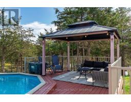 What a find! 4890 North Shore Crescent - a 2 storey 2,700 square foot home with oversized double car garage, two acres overlooking a pond, rugged Canadian shield, and only 15 minutes to Kingston. Life doesn't just happen at this beautiful home it unfolds across the entire property. Step past the Douglas-Fir timber-framed porch and into the spacious front entry with custom built-ins. From here, the main floor opens in two parts. To the right is where you'll find the open concept kitchen, dining and living room with pellet stove. It's all been recently renovated to take full advantage of the large floor plan. A little further still and you're in a sitting nook that connects to the sun-room and a refreshed half bath. Back to the more private end of the home is an office with views to the front and a flexible bonus room. There are three bedrooms upstairs. The primary, with its bright and expansive walk-in closet and new 4-piece bath, is spectacular. The kids bathroom is just as big and even comes with separate sinks for the little ones. The laundry is in the middle of all the action and has a door to the exterior for direct access to a clothes line. Light, proportion, and utility are the quiet luxuries here. Outside, the lot is both retreat and launch point: a pool set into the yard, a deck for entertaining, a screened porch for rainy nights, and an insulated bunkie (named Faraday) overlooking the pond ideal for guests, art, or quiet retreat. There are bike paths, out-buildings, and a veggie garden with raised beds. The edge of the pond is the perfect place to nature watch or just unwind and when the weather turns cold the pond becomes a massive backyard skating rink. 4890 North Shore Crescent is big, and that alone makes it a great option as a family home. Include the workshop-like garage, the bunkie, the pond, the trails, the pool, the exposed granite and its proximity to Kingston and you've just found yourself something very special indeed! (id:61594)