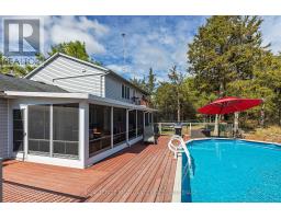 What a find! 4890 North Shore Crescent - a 2 storey 2,700 square foot home with oversized double car garage, two acres overlooking a pond, rugged Canadian shield, and only 15 minutes to Kingston. Life doesn't just happen at this beautiful home it unfolds across the entire property. Step past the Douglas-Fir timber-framed porch and into the spacious front entry with custom built-ins. From here, the main floor opens in two parts. To the right is where you'll find the open concept kitchen, dining and living room with pellet stove. It's all been recently renovated to take full advantage of the large floor plan. A little further still and you're in a sitting nook that connects to the sun-room and a refreshed half bath. Back to the more private end of the home is an office with views to the front and a flexible bonus room. There are three bedrooms upstairs. The primary, with its bright and expansive walk-in closet and new 4-piece bath, is spectacular. The kids bathroom is just as big and even comes with separate sinks for the little ones. The laundry is in the middle of all the action and has a door to the exterior for direct access to a clothes line. Light, proportion, and utility are the quiet luxuries here. Outside, the lot is both retreat and launch point: a pool set into the yard, a deck for entertaining, a screened porch for rainy nights, and an insulated bunkie (named Faraday) overlooking the pond ideal for guests, art, or quiet retreat. There are bike paths, out-buildings, and a veggie garden with raised beds. The edge of the pond is the perfect place to nature watch or just unwind and when the weather turns cold the pond becomes a massive backyard skating rink. 4890 North Shore Crescent is big, and that alone makes it a great option as a family home. Include the workshop-like garage, the bunkie, the pond, the trails, the pool, the exposed granite and its proximity to Kingston and you've just found yourself something very special indeed! (id:61594)