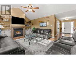 Welcome to 4893 Firelane 18 in Sherkston peaceful getaway with titled beach access. This relaxed coastal inspired bungalow loft sits on a beautiful 100 by 150 foot lot just a short walk from Sherkston Shores, sandy beaches, and scenic trails. Built in 2006 and lovingly maintained by its original builder owner for 19 years, this 2,181 square foot home blends cottage comfort with modern updates to offer an easygoing, year round lifestyle near Lake Erie.Inside, the main floor opens with a bright foyer and warm neutral tones that flow into a spacious living room with vaulted ceilings and a cozy wood burning fireplace. The large picture window frames a peaceful treed view, creating a calm cottage style atmosphere. The recently updated kitchen features brand new countertops, under mount lighting, a full tile backsplash, refreshed cupboards, and new appliances in 2023, all finished in a timeless coastal palette. The dining area leads to double garden doors and a covered gazebo overlooking the landscaped yard, perfect for summer gatherings or morning coffee outdoors.The main level also includes a generous primary bedroom with a five piece ensuite, a second bedroom, and an updated two piece bath with new flooring, vanity, hardware, and fixtures. Upstairs offers an inviting loft space, ideal for guests, office use, hobbies, or extra relaxation space.Outside, the landscaping has been meticulously maintained and becomes beautifully lush in the spring and summer months. The detached shed/bunkie is fully powered and offers great potential for a seasonal second income during the spring and summer months. The crawl space is excellent for storage, and the double car garage is fully insulated with heat and air conditioning for year round comfort. Additional features include rough in central vac, 200 amp service, propane heating, wood burning fireplace heat, original roof/windows that look new pride of ownership throughout. This isn't just a house it's cottage life, every single day. (id:61594)