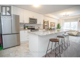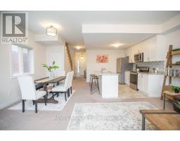49-77 Diana Avenue is a beautifully maintained end-unit, two-storey townhouse offering 3 bedrooms, 2.5 bathrooms, and a rare walk-out basement backing onto peaceful green space. Built in 2020, this home features an open-concept main floor with 9-foot ceilings, neutral paint colours throughout, updated light fixtures, and zebra blinds. The kitchen overlooks the living and dining areas and showcases white shaker cabinetry with upgraded hardware, stainless steel Whirlpool appliances, a large centre island, and excellent flow for everyday living and entertaining. The spacious living room is filled with natural light and features patio doors that lead to an upper-level deck with serene views ofthe surrounding green space. Upstairs, the primary bedroom includes a walk-in closet with custom organizers and a private ensuite with a double vanity and a standalone shower. Two additional bedrooms offer generous closet space and large windows, complemented by a full main bathroom and convenient laundry facilities located on the bedroom level. The walk-out basement provides a large rec room, access to a lower patio, and a rough-in for a future bathroom. This move-in-ready home offers a functional layout, modern finishes, and a desirable setting backing onto green space. (id:61594)