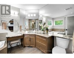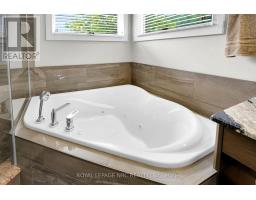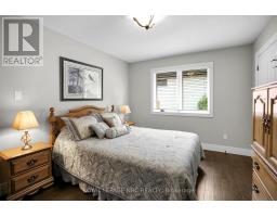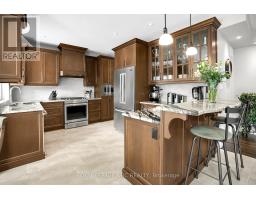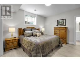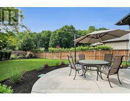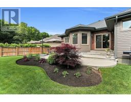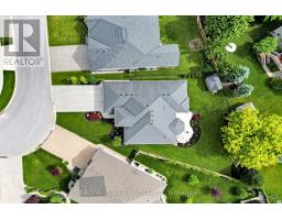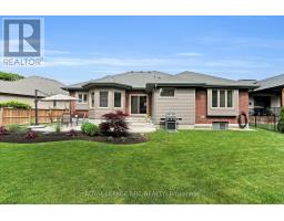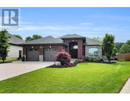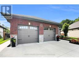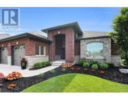 Packed with Pizzazz! Welcome to 49 Ashby Crescent, a custom bungalow by Keegan Custom Homes, proudly nestled in Saxonville Estates - Strathroys premier community. Bursting with pride, this striking home is built to the highest building standards of quality, craftsmanship, and energy efficiency from the inside-out & top to bottom. Upon arriving, the distinguished stone-and-brick façade, sleek concrete driveway and manicured landscaped gardens set a stunning first impression. A grand covered front entry with double solid fibre glass doors leads to a spacious welcoming that opens the door to elegance and warmth. Unwind after dinner in the peaceful front living room, with stone-surround gas fireplace offering the perfect setting for after dinner evening conversation.  Just steps away, the formal dining room provides a delightful setting for those special occasions. The kitchen is a dream for any chef featuring rich, cappuccino-stained solid cherry cabinetry, premium granite countertops, a breakfast bar, and a dinette with bay window overlooking the serene backyard. Adjacent to the kitchen, is the generous family room with large sliders to the rear patio bliss. Retreat to the oversized primary bedroom, which features a large walk-in closet plus 'his-and-hers' closets for optimal storage and a spa-like 4-piece ensuite with  walk-in glass shower. Built for efficiency and comfort, this home boasts R-24 ICF foundation walls, R-50 attic insulation, triple-pane windows; R29.5 Roxul-insulated exterior walls & TGI floor joist systems. Smart design details with motion-sensor lighting in the hallways and bathrooms, along with abundant LED and recessed lighting throughout. The finished lower-level impresses with 9-foot ceilings, 5.1 surround sound, luxury vinyl plank flooring with underlay for sound dampening, and an expansive layout offering huge recreation room, games area, bedroom, 4 pcs ensuite, and a 2 pcs guest powder room with ample storage too! Even a heated double garage! (id:61594)