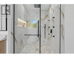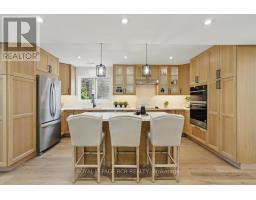 Step into luxury with this beautifully renovated home, transformed from top to bottom, leaving nothing to do but move in & enjoy! From the moment you walk through the front door, you're greeted with a bright & airy atmosphere & gorgeous engineered hardwood flooring that flows seamlessly through the home. At the heart of the home is a custom-designed kitchen, featuring a large centre island w/breakfast bar, elegant pendant lighting, & warm cabinetry w/under-cabinet lighting. The open-concept layout makes entertaining effortless, with a formal sitting area, dining area, & living rm, all bathed in natural light from a stunning picture window. The dining area is an entertainer's dream, featuring a sleek electric fireplace & a stylish dry bar w/floating wood shelves enhanced by built-in lighting & built-in bar fridge. At the back of the home, the spacious living rm offers indoor-outdoor living w/a patio door leading to the back deck. A main-level bdrm/office & 2-pce powder rm complete this floor. Upstairs, the primary suite is a true retreat, featuring a vaulted ceiling, two walk-in closets, and an elegant 5-pce ensuite. This spa-inspired ensuite includes a double vanity, a soaker tub, heated floor & a stunning walk-in shower with a custom lighted niche, rain shower head, and body jets. Down the hall, you'll find 2 addit'l bdrms, a 4-pce bathroom, & convenient upper-level laundry. The fully finished lower level is a fantastic bonus, offering a legal apartment w/separate entrance, full-size eat-in kitchen, spacious living rm, a large bdrm w/2 closets & an egress window, & a 4-pce bathroom w/stackable laundry. Whether for extended family, guests, or potential rental income, this space offers incredible flexibility. With parking for 6 vehicles plus a detached 2-car garage, this home is tucked away in a well-established neighbourhood & offers modern living in a timeless setting. Paved driveway (2025), New sod (2025) (id:61594)
