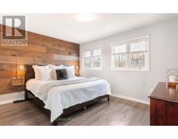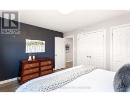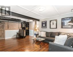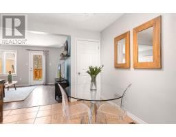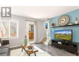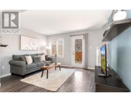Inviting FREEHOLD Townhome featuring an open concept main level offering an eat in kitchen w' white cabinetry, tile flooring, SS appliances, movable Stainless Steel island, urban chic backsplash & a custom wood shelf. The Living room has laminate flooring, O/L's the fully fenced backyard, offers a walkout to the large deck and grill gazebo. (Grill Gazebo has frame only. Needs a top canopy). Also featured is a large window for plenty of natural daylight. The main level offers tile & laminate flooring (no carpet), has a convenient 2pc powder rm + interior access to the garage. Spacious Upper Landing Leads to the Primary bedroom offering His & Her double closets, beautiful accent wall & 2 large windows. Two additional comfortably sized Bedrooms have b/i closets & good size windows. The main 4pc washroom is spacious & offers neutral tile flooring, modern vanity & soaker tub. Finished Rec Room for additional living space & entertaining offers a built in bar area with shelving + a stylish rolling Barn Door! Great space to entertain family & friends. The lower level also houses a laundry room & storage space. Roof shingles 5/2025, Located Close To Shops, restaurants, cafe's, Schools, Dog Park, Public Trans. and loads of Amenities! Convenient access to Highways 10 & 9. (id:61594)