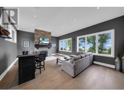 NEWLY BUILT ARCHITECTURAL MASTERPIECE ON 2.4 ACRES WITH PANORAMIC WEST-FACING VIEWS OF GEORGIAN BAY! Just 25 mins from Midland & 90 mins from the GTA! Nestled within the exclusive Cedar Ridge community, along with nearby trails, parks & schools. Step through the grand timber-framed entrance, where oversized wooden doors welcome you into a world of sophistication. The living spaces are adorned with oak plank flooring, soaring 10+ ceilings, oversized doors/windows & built-in speakers. The great room is truly spectacular, with 20 cathedral ceilings, porcelain-faced linear f/p & floor-to-ceiling windows that perfectly frame the water views. The professional kitchen showcases quartz countertops, a massive 5x12 island & top-of-the-line Thermador appliances, including a 6-burner gas cooktop, double wall oven & full-size fridge/freezer with an integrated wine fridge. Entertain in style with a built-in servery featuring a second dishwasher, sink & built-in coffee maker. Enjoy uninterrupted views & sunsets over Georgian Bay, thanks to seamless glass railings on the covered timber-framed deck. The expansive primary bedroom offers stunning views of the bay, an impressive w/i closet with built-ins & a luxurious 6pc ensuite with a dual w/i shower, soaker tub with water views & dual sinks. Ascend to the upper loft featuring a cozy f/p, 14 vaulted ceilings & water views. The finished w/o basement is designed for entertainment, with a spacious family room, custom gym & home theatre with a wet bar. Two lower bedrooms with full-size windows, a 4pc bathroom with heated floors & a built-in cedar sauna provide a comfortable retreat for guests. Outside, the landscaped firepit area & expansive yard offer endless opportunities for enjoyment. With a new septic system, drilled well & integrated sprinkler system, every detail of this home has been meticulously crafted to ensure comfort & peace of mind. (id:61594)