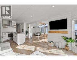 Welcome to 6 Water's Edge! This beautifully renovated lakefront cottage is truly move-in ready and perfect for anyone looking to enjoy effortless waterfront living. AMAZING INCOME POTENTIAL OF $3000+ PER WEEK! Offering 2 bedrooms, a fully updated bathroom, and a bright, open-concept kitchen/living/dining area, it's the kind of place where the whole family will love spending time together. The kitchen features an island, stainless-steel appliances, a modern hood fan, and a sleek black sink and faucet. The dining area-complete with a bar fridge-lets you enjoy meals al fresco by the lake or inside in the comfort of a bright, airy space. The living room is finished with stylish shiplap and a floating wood mantle for a relaxed, modern cottage vibe.After a sun-soaked day on the beautiful beach just steps away, unwind under the stars by the stone-paver lakeside fire pit, or take in the expansive water views from the extended back deck. The large covered front deck sets the tone the moment you arrive-welcoming, comfortable, and built for making memories.Located just 90 minutes from Toronto and 20 minutes from Niagara Falls, Sherkston Shores spans 560 acres of stunning grounds with 4 km of sandy beachfront, giving you endless opportunities to explore, relax, and enjoy the outdoors.With features like a furnished interior, mini-split heating/cooling system, open floor plan, walk-in shower, washer/dryer hookups, kitchen island, and of course the premium waterfront site, resort life at The Shores is truly calling. (id:61594)
