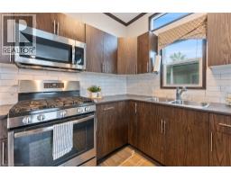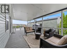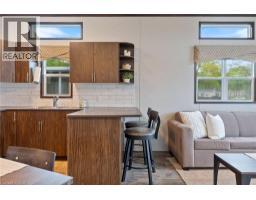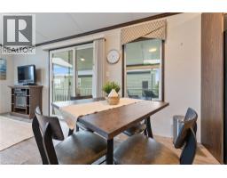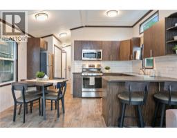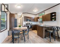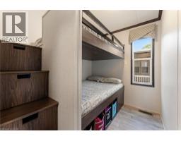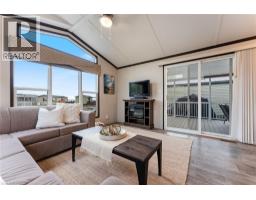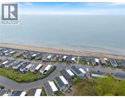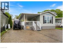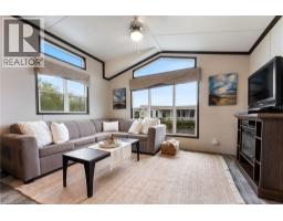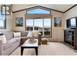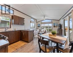 A rare opportunity in Wyldewood Beach Club! Welcome to Unit #213—a newer, fully financeable 2-bedroom, 1-bathroom cottage with no rear neighbours, just a stone's throw from Lake Erie beaches.This well-maintained unit features a spacious composite deck, partially covered with an extended section and a custom fire pit patio—perfect for outdoor living and entertaining. Inside, enjoy an open-concept layout with vaulted ceilings and transom windows, creating a bright, airy atmosphere throughout the kitchen, dining, and living areas. The kitchen is equipped with stainless steel appliances, ample cabinetry, and a peninsula breakfast bar for casual dining. The primary bedroom includes built-in cabinetry for extra storage, while the second bedroom offers bunk beds with full-step access to the top bunk—a safe and thoughtful design. Additional features include a large storage shed and low-maintenance finishes, all set in a highly desirable location close to the lake but without the additional waterfront premiums. Don’t miss this unique chance to own in one of Sherkston Shores’ most popular gated communities. (id:61594)