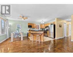 Welcome to this lovely move-in ready raised bungalow, perfectly located in the heart of Pembroke and within walking distance to the East End Mall, Canadian Tire, Walmart, and other major amenities. This well-maintained 4 bedroom, 2 bathroom home offers a fantastic blend of comfort, convenience, and space for the whole family. The bright and inviting main floor features an open-concept living, dining, and kitchen area, ideal for both everyday living and entertaining. The kitchen is finished with stainless steel appliances and a centre island, while large windows in the living and dining rooms flood the space with natural light. Three comfortable bedrooms and a full bathroom complete the main level, including two bedrooms with beautiful sunrise views over the Ottawa River. The lower level adds even more functional living space with a spacious rec room featuring tall ceilings and an electric fireplace, an additional large bedroom, and another full bathroom. Access to the attached garage with an elevated storage area is conveniently located in the entryway landing. Outside, a wooden deck leading to the fully fenced backyard with garden boxes, and greenspace directly behind the home for added privacy and a peaceful setting. Move-in ready and ideally situated close to everything, this charming home is a wonderful opportunity in one of Pembroke's most convenient locations. 24 hour irrevocable on all offers. (id:61594)