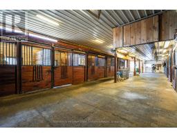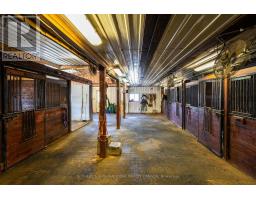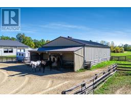 A unique modern ranch on nearly 20 acres with premier equestrian facilities. Royal Run Ranch features an 80 x 200 indoor arena with roll up doors for natural light and air flow, heated 12-stall barn with tack room and automatic waterers, hay barn, 6 fenced paddocks, 2 covered horse shelters, and insulated covered horse walker. Arena offers east-side parking for trailers and equipment. The home blends modern style with farmhouse charm, offering formal living/dining, open family room with fireplace, elevated kitchen overlooking back paddocks, and 4 fireplaces total. Primary suite on its own floor with walk-in closet, jacuzzi tub, and separate shower. Lower level includes gym, party room with wet bar, bonus rooms, and tanning room. Pond with finished track, mature trees, privacy, and scenic views complete this rare estate. (id:61594)