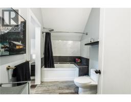 Step into the perfect blend of historic charm and modern living with this beautifully renovated century home, ideally located in the heart of a vibrant, family-friendly neighborhood. Boasting an open-concept layout with soaring ceilings, the main floor features a stylish gas fireplace, a renovated kitchen with sleek newer cabinetry, a breakfast bar island, and a versatile dining/office space enhanced by an exposed brick feature wall. A convenient 2-piece bath with stackable washer/dryer adds functionality to the main level. Upstairs, you'll find vaulted ceilings in every room, creating an airy and expansive feel. The primary suite offers a cozy fireplace, galley-style walk-in closet, and direct access to a beautifully appointed bathroom — a true private retreat. Outside, enjoy morning coffee on the covered front porch, or entertain in style on the expansive two-tier deck with privacy walls, overlooking a sprawling backyard—perfect for summer BBQs, hosting friends and family, or letting kids and pets play freely. The paverstone driveway and walkway, accented with exterior pot lights, complete the stunning curb appeal. This is a rare opportunity to own a character-filled home with thoughtful modern updates in a prime central location. Contact your agent today—this one won’t last long! (id:61594)
