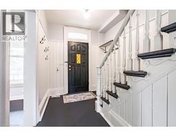 Discover this charming Victorian home built in 1899, offering timeless character with modern conveniences. This beautifully maintained property features original wood floors, classic baseboards, and elegant crown molding throughout, creating an authentic period atmosphere. The spacious main level boasts large principal rooms filled with natural light from large picture windows. The updated eat-in kitchen provides a perfect gathering space for family meals, while the convenient main floor bathroom and laundry area add practical functionality to daily living. Upstairs, you'll find three generous bedrooms plus a versatile bonus room that can serve as a home office, craft space, or additional storage. The second floor features a large bathroom complete with a classic clawfoot tub, perfect for relaxing after a long day. Step outside to enjoy the welcoming front porch, ideal for morning coffee or evening conversations. The home sits nicely set back from the street, providing added privacy and a sense of retreat from busy city life. This property has been thoughtfully updated with modern electrical and plumbing systems, ensuring reliable performance for years to come. The kitchen and bathrooms have been refreshed while maintaining the home's historic charm. Energy-efficient newer windows throughout the house help reduce utility costs while preserving the original architectural style. Located in a family friendly neighborhood, enjoy easy access to public transportation with nearby bus service and West Harbour GO. Hamilton waterfront, offers recreational opportunities just a short walk away, while essential amenities like grocery shopping are readily accessible. Quality education options are available at local schools in the area. This rare find combines Victorian elegance with contemporary comfort, making it perfect for those who appreciate historic character without sacrificing modern convenience. (id:61594)
