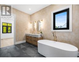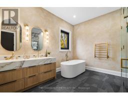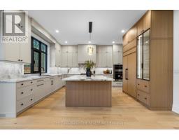 Prepare to redefine your expectations of luxury living in Oakville.This detached home on a premium lot presents a level of design, craftsmanship, and contemporary elegance rarely available on the market. Thoughtfully custom built in 2025, offering over 5,000 sq.ft. of refined living space, the home features a striking stone & stucco exterior, sleek aluminum windows, modern metal/flat roofing, and a grand fluted double-door entry that sets the tone for what lies within. With 10-ft ceilings, engineered white oak flooring, curated designer lighting, LED-lit mono-stringer stairs, limewashed feature walls, and expansive windows, every detail reflects warmth and intentional design. The chef-inspired kitchen boasts natural marble countertops, Sub-Zero & Wolf appliances, dual-tone cabinetry, a dedicated coffee/pantry room, and a dramatic waterfall island-ideal for both entertaining and everyday indulgence. The family room's sculpted stone fireplace, built-in speakers, and full aluminum bifold doors create a seamless indoor-outdoor experience. Adjacent to the dining area, a stunning glass-enclosed wine cellar with an aluminum frame stands as a true architectural centerpiece, elevating every gathering. Upstairs, the second level continues with 10-ft ceilings and four generously sized bedrooms, each complete with its own ensuite. The primary retreat impresses with a double-door entry, his-and-her walk-in closets with LED-lit custom cabinetry, and a spa-like ensuite featuring marble finishes, a rain shower, porcelain slab walls, a heated towel rack, and a freestanding tub. The fully finished lower level with 9-ft ceilings enhances lifestyle living, offering a sauna, home theatre, fitness room, marble-clad wine bar, guest bedroom, luxury bath, and large above-grade windows. Ideally located minutes from Appleby College, St. Thomas Aquinas, W.H. Morden School, scenic trails, and boutique shopping, this home delivers an extraordinary blend of location, design, and elevated luxury. (id:61594)