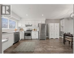 Step inside and be welcomed by impressive 20-foot cathedral ceilings in the living room, complemented by expansive floor-to-ceiling windows and sliding glass doors that fill the space with natural light and provide seamless access to the outdoor patio. The second level is designed for entertaining, featuring a stylish kitchen with shaker-style cabinetry, stainless steel appliances, and pot lights. Its open-concept layout flows effortlessly into the dining area, highlighted by a modern glass overlook to the living room below. A solid oak staircase leads to the third level, where you'll find a spacious primary bedroom with his-and-hers closets, along with two additional bedrooms and a beautifully renovated 4-piece bathroom complete with clean finishes, elegant tile work, and new glass shower doors. The basement offers a dedicated laundry area and an abundance of storage, ensuring everything has its place. Additional upgrades include a new A/C (2020), blinds throughout, painted drywall in the garage, and garage floor refinished with concrete in 2023, whole-house active Carbon Water Filter. Outdoor enhancements include a fully redone backyard patio (2023) and a brand-new front door (2023), adding both style and functionality. Located in a highly sought-after neighbourhood, this home is just steps from public transit, Heise Park, scenic biking trails, excellent schools, and Conestoga College. A spacious shared green space offers the perfect setting for kids, pets, and outdoor enjoyment. (id:61594)