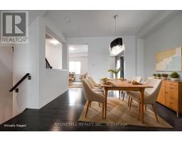 This beautiful and large 1,996 sq. ft. (above grade), 9 year-old Daniels END UNIT townhome offers refined living spaces and modern amenities. 3 bedrooms on the 3rd floor and a versatile 4th bedroom or den on the main floor complemented by a two-piece ensuite and provides a separate rear entrance with direct access to Winston Churchill Boulevard. Features include elegant dark stained hardwood floors, dark oak staircases with runners from the main to the second floor, and from the second to the third floor. The second floor boasts soaring 9-foot ceilings, granite countertops, and a ceramic backsplash in the kitchen. Recently (December 2025) installed upscale vinyl flooring enhances the second floor. The unfinished basement includes a roughed in washroom and bright oversized windows. Perfect for a 5th bedroom or comfy rec room! Additional highlights include a spacious deck off the kitchen, proximity to shopping, convenient transit access at your doorstep, and easy connection to Highway 403. (id:61594)