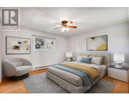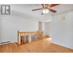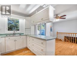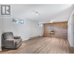 This charming 3+1 bedroom, 2-bath home is perfectly positioned on a corner lot. Step inside to a bright and inviting living area featuring a large window that fills the space with natural light. The kitchen showcases a stylish brick feature wall, while the adjacent dining area offers direct access to the rear deck-ideal for entertaining or enjoying morning coffee outdoors. Upstairs, you'll find a spacious primary bedroom with a cheater door to the full bathroom, along with two additional generously sized bedrooms. The lower level provides even more living space, featuring a cozy family room with a gas fireplace, a fourth bedroom, a second full bathroom combined with laundry, and ample storage. Outside, enjoy a backyard surrounded by mature trees for added privacy and a large deck perfect for gatherings or quiet relaxation. Freshly painted this year and conveniently located close to shopping, schools, and parks, this home is truly move-in ready. (id:61594)