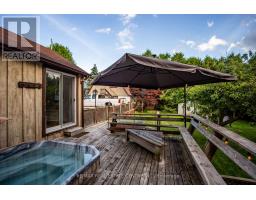 One-of-a-Kind Beauty in a Prime LocationIdeally situated just minutes from Hwy 400, this exceptional home offers convenient access to schools, a library, recreation centre, parks with outdoor water features, restaurants, an outlet mall, and local shops.Step into your own private backyard oasis, featuring three expansive decks that wrap around the home-perfect for entertaining or relaxing. The beautifully landscaped yard is surrounded by mature cedars, highlighted by a stunning Japanese maple and a unique pear tree. Enjoy evenings by the fire pit or unwind in the hot tub. Additional outdoor features include a spacious shed and a dedicated firewood/garden shelter, providing ample storage for all your landscaping needs. Plenty of parking adds to the home's functionality.This charming 1.5 storey home has been thoughtfully upgraded with modern wiring, enhanced insulation, air conditioning, and central vacuum. The main floor showcases a beautifully renovated kitchen with high-end appliances, a stylish four-piece bathroom, and refinished original flooring throughout, along with generous storage space.The second floor offers three comfortable bedrooms and a well-appointed three-piece bathroom.A standout feature is the fully renovated workshop, complete with its own air conditioning, pellet stove, loft overlooking the space, and two separate entrances-an ideal setup for hobbyists, creatives, or potential home-based business use.A truly unique property that must be seen to be fully appreciated. (id:61594)