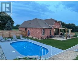 Welcome to Your Ultimate Country Masterpiece! Prepare to be absolutely captivated! This isn't just a home; it's a lifestyle statement. Nestled just west of the vibrant, rapidly growing community of Paris, this stunningly updated modern ranch offers the perfect blend of high-end luxury and peaceful country serenity. Built with the legendary Schuit Homes, every inch of this property radiates quality and sophisticated design. The moment you step through the door, you are greeted by a breathtaking open-concept layout. The expansive living room flows seamlessly into a chef-inspired kitchen with all new cabinets, countertops and backsplash. Featuring sleek stainless steel appliances, a center island, and a bright dining nook, it is the heart of the home. Imagine morning coffee by the patio doors or hosting summer BBQs on your covered porch, overlooking nothing but gorgeous, rolling countryside. For formal occasions, the adjacent dining room dazzles with recessed ceilings, rich hardwood floors, and massive windows that bathe the space in natural light. Luxury Meets Functionality The primary suite is a true sanctuary, boasting a massive walk-in closet, California shutters and a spa-like ensuite featuring a freestanding soaker tub and a custom frosted glass/tiled shower. The main floor is rounded out by a convenient laundry room and a chic powder room. Head downstairs to find a finished lower level that feels like a second home! With a huge, cozy rec room, two spacious bedrooms a workout room, and another full bathroom, there is room for the whole family and then some. Extensive 2023-2024 Upgrades Peace of mind comes standard here. Within the last two years, this home has been transformed: Total Exterior Refresh: All windows, entry doors, and the double-attached garage door were replaced (2023/2024). Fresh Interiors: Stunning brand-new flooring throughout both the main floor and basement. Summer Fun: A sparkling new pool installed in 2023 is ready for your enjoyment! (id:61594)