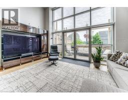 $688.11 MonthlyStylish Seagram Loft – Ground Floor with Character and Convenience and Commercial/Residential uses! Welcome to this unique ground-floor loft in the iconic Seagram Lofts – a one-of-a-kind space blending historic charm with modern updates, perfect for those seeking style and functionality in the heart of UpTown Waterloo. Step inside to discover cork flooring throughout, soaring ceilings, and abundant natural light. The kitchen is thoughtfully designed with newer cabinets, a tiled backsplash, and clever under-cabinet storage. New pot lights brighten the kitchen, while the living area features a built-in TV unit that stays with the unit. Upstairs in the loft, you'll find a spacious primary bedroom with a huge walk-in closet complete with custom built-ins and stunning stained glass, along with an ensuite featuring tile floors and a built-in closet. The main floor bedroom/den offers great utility and flexibility. Both bathrooms have tile flooring, with the main level bath boasting a floating towel storage shelf and a new shower head. Additional features include: blackout blinds (top & bottom) and custom Velcro blinds over the patio doors, upstairs laundry, two outdoor parking spots, storage locker, and a built-in furnace filter exchange program included in condo fees. Building amenities include: guest suite on-site, gym in Building 5, games room with pool table in Building 3, wo bike storage areas, rooftop BBQ, and on-site property manager. This is your chance to own a piece of Waterloo’s heritage with all the modern touches you need. (id:61594)