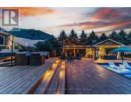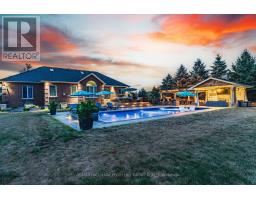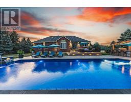 OVER 4,000 SQ FT OF LUXURY, PREMIUM UPGRADES, & RESORT-STYLE OUTDOOR LIVING WITH AN INGROUND POOL & COVERED LOUNGE - ALL IN THE HEART OF SNOW VALLEY! Located on a quiet cul-de-sac surrounded by mature trees and rolling greenspace, this showstopping bungaloft offers a rare blend of privacy and outdoor luxury in a coveted neighbourhood. Enjoy a tranquil lifestyle in a safe and established community just minutes from hiking, golf, and conservation areas, with Snow Valley Ski Resort, downtown Barrie, and Hwy 400 all close by. Set on an expansive lot, this home delivers a backyard that rivals a resort, complete with an 18x44 ft inground pool with 3 waterfall features and full sun exposure, plus a relaxing hot tub on the spacious deck. The outdoor pergola-covered kitchen and dining area delights with a built-in BBQ, granite counters, and an adjacent lounge with a wood fireplace, ceiling fan, and TV mount - perfect for evenings under the stars. Professionally upgraded with built-in irrigation, outdoor speakers, automatic lighting, and full fencing, every inch of the exterior has been designed for comfort and indulgence. Inside, the open layout flows through the eat-in kitchen and living room, anchored by a gas fireplace and a walkout to the deck for seamless indoor-outdoor connection. A formal dining room adds refinement, while three main bedrooms include a primary retreat with a walk-in closet, a deck walkout, and an ensuite with a soaker tub and glass shower. The loft offers flexible extra living space, while the Dricore protected basement provides even more possibilities with a bedroom, a full bath, a rec room, kitchenette and in-law suite potential. Additional highlights include crown moulding, pot lights, fresh paint, built-in surround sound and security, a 3-car garage with an oversized driveway, and a custom storage shed. A true statement in style, quality, and elegance, this #HomeToStay offers an unparalleled living experience inside and out! (id:61594)