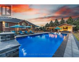 OVER 4,000 SQ FT OF LUXURY, PREMIUM UPGRADES, & RESORT-STYLE OUTDOOR LIVING WITH AN INGROUND POOL & COVERED LOUNGE - ALL IN THE HEART OF SNOW VALLEY! Located on a quiet cul-de-sac surrounded by mature trees and rolling greenspace, this showstopping bungaloft offers a rare blend of privacy and outdoor luxury in a coveted neighbourhood. Enjoy a tranquil lifestyle in a safe and established community just minutes from hiking, golf, and conservation areas, with Snow Valley Ski Resort, downtown Barrie, and Hwy 400 all close by. Set on an expansive lot, this home delivers a backyard that rivals a resort, complete with an 18x44 ft inground pool with 3 waterfall features and full sun exposure, plus a relaxing hot tub on the spacious deck. The outdoor pergola-covered kitchen and dining area delights with a built-in BBQ, granite counters, and an adjacent lounge with a wood fireplace, ceiling fan, and TV mount - perfect for evenings under the stars. Professionally upgraded with built-in irrigation, outdoor speakers, automatic lighting, and full fencing, every inch of the exterior has been designed for comfort and indulgence. Inside, the open layout flows through the eat-in kitchen and living room, anchored by a gas fireplace and a walkout to the deck for seamless indoor-outdoor connection. A formal dining room adds refinement, while three main bedrooms include a primary retreat with a walk-in closet, a deck walkout, and an ensuite with a soaker tub and glass shower. The loft offers flexible extra living space, while the Dricore protected basement provides even more possibilities with a bedroom, a full bath, a rec room, kitchenette and in-law suite potential. Additional highlights include crown moulding, pot lights, fresh paint, built-in surround sound and security, a 3-car garage with an oversized driveway, and a custom storage shed. A true statement in style, quality, and elegance, this #HomeToStay offers an unparalleled living experience inside and out! (id:61594)