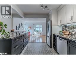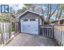 CHARACTER-FILLED EAST END BUNGALOW WITH MODERN UPDATES, A DETACHED GARAGE & BACKING ONTO A SCHOOL! This charming East End bungalow is perfectly situated less than five minutes from downtown shops, dining, Johnson's Beach, the MacLaren Art Centre, and the Barrie Public Library, with parks and recreation close by. Families will love being able to walk to both Oakley Park Public School and Barrie North Collegiate, creating an easy daily routine. The exterior offers curb appeal with vinyl siding in a board and batten style, a welcoming porch, and a tidy lawn, while the fully fenced backyard extends your living space with a large deck, soffit lighting, gas BBQ hookup, and peaceful views backing onto Oakley Park P.S. Natural light fills the living room, complemented by pot lights, crown moulding, and a bay window that adds warmth and charm. The updated kitchen features two-tone cabinetry with plenty of storage, granite counters that carry through to the backsplash, stainless steel appliances, undermount lighting, and patterned flooring. Two comfortable bedrooms are located on the main level, served by an updated bathroom with a modern tile surround, a built-in shower niche, and heated floors. The rear door provides easy access to the basement area, which offers future potential for an in-law suite and currently hosts a third bedroom, a spacious rec room, a full bathroom, and generous storage. A detached 24' x 12' garage is ideal for parking, hobbies, or extra storage, and the driveway fits four vehicles with ease. Move-in ready and full of character, this East End gem is a wonderful place to call home! (id:61594)