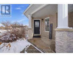 Stunning 4-bedroom, 4-bathroom executive home offering 2,525 sq. ft., set on a premium corner pie-shaped lot in one of Alliston's most sought-after neighbourhoods. Expansive backyard widens to 62.11 ft across, providing exceptional outdoor space for entertaining and family enjoyment. The heart of the home is a Parisian-inspired chef's kitchen, featuring a 9-ft oversized centre island with undermount sink, custom "Grigio Drift" quartz countertops, stylish backsplash, elegant butler's station with pantry, and sleek Frigidaire Gallery stainless steel appliances. Spacious living and dining areas showcase smooth ceilings, pot lights throughout, and upgraded pendant fixtures. The main floor offers a convenient laundry/mudroom with direct garage access. Upstairs, the primary retreat includes a generous walk-in closet, a spa-like 5-piece ensuite with a zen-inspired design, and a charming sitting area ideal for a nursery or reading nook. The finished lower level offers transitional design elements, cozy stone-surround gas fireplace, 2-piece powder room, separate gym or office, and a rough-in for a future wet bar or kitchen. Engineered hardwood flooring throughout the home. Step outside to your private backyard oasis featuring extensive armour stone landscaping, a custom-built 10x10 oversized shed great for convenient storage, and an above-ground saltwater pool. Notable updates include high-end garage doors (2025), front-load LG washer and dryer (2026), and a recently replaced pool pump with regular professional maintenance. Ideally located close to shopping, dining, recreation, and hospital services, within walking distance to schools, and offering a convenient commuter location. (id:61594)
