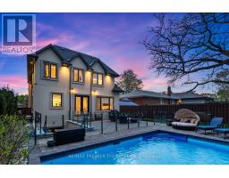 Discover refined luxury in this stunning custom-built home with 3500 sf of living space in Etobicoke's sought-after West Deane neighbourhood. Featuring elegant limestone accents and impeccable craftsmanship throughout, this residence offers 10' ceilings on the main level, 9' ceilings on both the second floor and finished basement, and soaring 11' coffered ceilings in key areas. Enjoy rich hardwood floors, custom drapery, and a sun-filled skylight over the staircase. The chef-inspired kitchen boasts quartz countertops, premium appliances, and is perfect for both everyday living and entertaining. The primary suite features heated floors for year-round comfort, while the walk-out basement adds functional living space for relaxation or gatherings around the In-ground saltwater pool. Smart upgrades include recessed ceiling speakers with a 5-zone amplifier on the main level, as well as integrated speakers in the primary suite and basement. The home also offers a 2-car garage with EV charging, and a gas BBQ hookup for outdoor enjoyment. Ideally located close to top-rated schools, parks, trails, golf courses, major highways, and shopping. This home blends luxury, comfort, and convenience in the heart of Etobicoke. (id:61594)