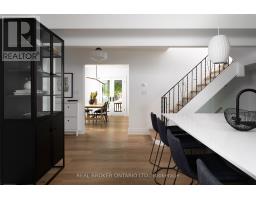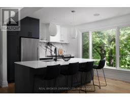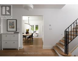 This exceptional detached home, set on a wide ravine lot, has been completely re-imagined and meticulously renovated from top to bottom. Interior design assisted by Sarah Birnie, named one of Canada's top 100 designers, this home is a beautiful blend of modern and warmth. Brimming with curb appeal, it welcomes you with a mature maple tree and the tranquillity of a quiet ravine street. Inside, a spacious foyer with a large front hall closet and rare main floor powder room sets the tone for the thoughtful design throughout. The kitchen is a chefs dream, showcasing Fisher & Paykel stainless steel appliances, custom cabinetry, an oversized island, and breathtaking ravine views. The open-concept dining and living area is anchored by a wood-burning fireplace and features large French doors that extend seamlessly onto a private veranda, perfect for morning coffee or evening cocktails.Upstairs, discover three generous bedrooms with treetop views and ample closet space. The serene primary suite, with west-facing windows, offers a peaceful retreat complete with extensive custom closets. The lower level boasts a versatile recreation room ideal as a playroom, cozy TV lounge, or home office along with an oversized pantry and abundant storage to suit family living. A direct walkout leads to a custom-designed ravine deck with spectacular views of Williamson Park Ravine, creating a backyard escape unlike any other.Perfectly situated just steps from parks, green spaces, schools, the farmers market, shops on Gerrard and transit, this home is a rare blend of modern luxury and natural beauty offering the best of both worlds. (id:61594)