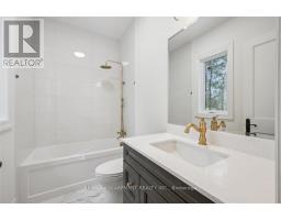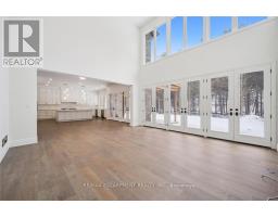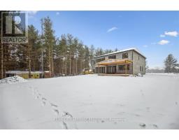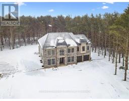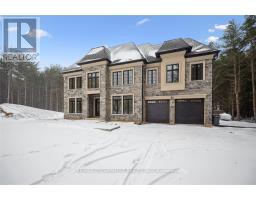 Tucked away in the quiet, tranquil outskirts of Brantford, this exceptional 5,000 sq. ft. new build sits on nearly 3 acres of land. Surrounded by towering evergreens and backing onto Fairchild Creek, 5 West Harris Rd. offers a rare sense of privacy and natural beauty-seamlessly paired with refined luxury living. The home features expansive living spaces with soaring cathedral ceilings, rich engineered hardwood flooring throughout, and modern finishes. Large windows frame breathtaking views of the private, wooded surroundings, creating a seamless connection to nature. Just off the front door, a dedicated home office provides a quiet workspace. A formal living room and separate formal dining room offer elegant spaces for entertaining, while the chef's kitchen, designed for everyday living and gatherings, features high-end appliances, extensive cabinetry, a large centre island, a convenient servery, and an additional dining area opening effortlessly to the family room. Upstairs, four spacious bedrooms each feature their own private ensuite. The primary suite is a true retreat, complete with a generous bedroom, spa-inspired ensuite featuring a freestanding tub, a massive walk-in shower, and an expansive walk-in closet with a skylight that pours natural light into the space. The full basement provides a blank canvas to tailor to your lifestyle-ideal for a home theatre, gym, bar, or games room. Step outside to a pool-sized backyard with a covered outdoor living area, perfect for relaxing or entertaining while immersed in nature. Luxury Certified. (id:61594)