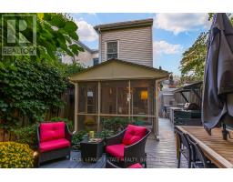 On a secluded Cabbagetown laneway "In prime Cabbagetown, this classic Second Empire 'Worker's Cottage' (circa 1870's) is perfect for a couple who enjoy life! In the summer, enjoy the private award-winning back garden. Prepare a meal at the outside kitchen on the natural gas BBQ while enjoying your guests. Or sit in the back patio, enjoying the quiet in a downtown neighbourhood with only the sound of the fountain to help you relax. Or relax over coffee in the sun-filled screened-in Muskoka Room. In the winter, open a bottle of wine from the 50+ wine cellar, or from the kitchen chiller, and relax by the gas fireplace. This is a home not to be missed: end of row with a side covered entrance, and separate side entrance to the backyard. The front features a mansard roof with ornate dormers. Inside has been renovated top to bottom. Open concept living/dining/kitchen, with hardwood floors, crown molding, gas fireplace, pot lights, designer chef's kitchen, high end SS appl. (id:61594)