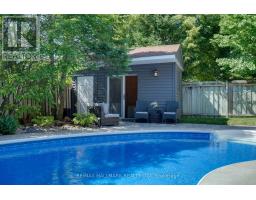 Experience a backyard oasis designed for entertaining and relaxation, with your own inground saltwater pool and inground landscaping system with full ambient lighting around the pool and entire home, brand new extensive interlock stonework and driveway, mature privacy trees with a tree sanctuary leading you to the pool, with a convenient pool house. This meticulously maintained home feels like a new Designer Model Home, brand new extra-large solid front door made from wood and carbon, fully renovated from top to bottom, inside and out, offering true turnkey living, with neighbours on only one side of the property, no houses backing onto the rear of the house! This secluded 49 foot x 123 foot lot provides ample room for summer gatherings with friends and family, with large windows overlooking the backyard, from the dining room and kitchen area. Inside the modern kitchen boasts updated cabinetry and brand-new appliances in the kitchen and large custom built-ins in the dining room, appliances, and a functional flowing floor plan, pot lights and upgraded LED lighting, not to mention the gas fireplace with stonework. Upstairs includes three generously sized bedrooms that each would fit king size beds in all of the bedrooms. The fully finished basement enhances living space with a sleek wet bar, full fridge, cozy gas fireplace, a fourth bedroom, modern bathroom and laundry area, perfect for an in-law suite. Brand new garage door system! Move in and enjoy this updated, private home in a quiet location close to schools, shopping, and minutes from Highway 400. (id:61594)