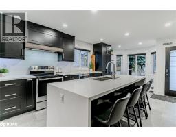 MODERN FAMILY HOME WITH A SLEEK DESIGNER KITCHEN, PRIVATE BACKYARD RETREAT, & PREMIUM UPGRADES THROUGHOUT! Welcome to a home where comfort, style, and everyday convenience come together in one irresistible package. Nestled on a quiet crescent in the heart of Barrie’s Holly neighbourhood, this detached link home is perfectly placed for family living - just steps from parks, schools, transit, and shopping, and minutes from the scenic trails of Ardagh Bluffs, a community centre, Highway 400, and Kempenfelt Bay’s boardwalk and beaches. Step inside to a professionally renovated interior where a considerable investment in premium upgrades showcases exceptional craftsmanship and purposeful design. The bright, open-concept main floor sets the tone with sleek pot lights, custom motorized blinds, and a stunning eat-in kitchen that blends beauty with function, featuring custom built-ins, a bold accent wall, a sun-drenched bay window, and a large island with seating for four. The living room invites you to unwind beside a modern electric fireplace framed by a striking feature wall, while a sliding glass door opens to a private, fully fenced backyard retreat with a spacious patio and green space to play, garden, or simply soak up the sunshine. The main floor is complete with a flexible office space, a laundry room, and a stylish 3-piece bath. Upstairs, three generous bedrooms await, including a peaceful primary with a walk-in closet, all served by a contemporary 4-piece bath. The highlights don’t stop there - under-cabinet RGB lighting in the kitchen and laundry room adds a playful yet practical vibe, while a newer A/C unit and furnace with an integrated humidifier ensure year-round comfort. With a newer insulated garage door, a recently updated roof, and no sidewalk for easy upkeep, this home is as functional as it is beautiful. From morning routines to evening gatherings, every detail in this #HomeToStay has been thoughtfully crafted to support comfortable, inspired living! (id:61594)