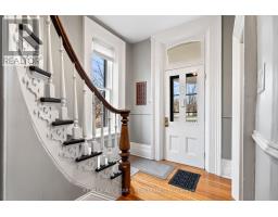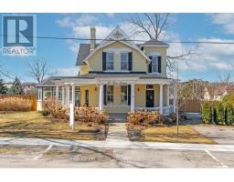 This stunning 3,248 sq ft (per MPAC) century home, built circa 1880, offers a perfect blend of historic charm and modern updates including a newer roof, furnace, and electrical wiring, ensuring comfort and peace of mind. It stands on a beautiful corner lot on one of the most picturesque streets in Uxbridge and features beautiful extensive gardens, offering fantastic curb appeal. The home boasts a wraparound porch, intricate decorative trim and shutters adding to its timeless beauty. Upon entering the grand foyer, you're greeted by a showcase curved staircase with beautiful ornate millwork accents and high ceilings. The main floor, with its 10' ceilings, retains much of its original charm, with oversized baseboards, trim, extended height windows, transoms, chair rails, and period cold air returns. The home features six distinct living spaces, including a formal living room with gas fireplace insert, central dining room, parlour with French doors, a cozy kitchen, an office and a beautifully rebuilt conservatory complete with stunning stained glass transoms which serves as a peaceful retreat. The kitchen, while not ostentatious, is functional, with a centre island with granite countertops, stainless steel appliances. The office with bathroom, is ideal for a work-from-home setup. The second floor, with 9.5' ceilings, has a generous landing with a serene reading nook, and the principal bedroom features an electric fireplace, large walk-in closet with custom organizers, and ample natural light. Two additional spacious bedrooms, a 3-piece bath with a soaker tub, and another 3-piece bath with a shower are also on the upper floor. The dry basement (8' ceilings) provides plenty of storage space, with a washer, dryer, hot water heater (rental), water softener (owned), & utility sink. Updates: 2023 - conservatory, porch repair, exterior repainted, raised deck. 2022 - Furnace, Fence, Wiring, Roof. From prior listing: 2021 - Fridge. 2020 - Stove. 2019 - AC. (id:61594)