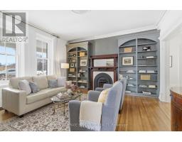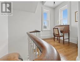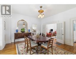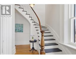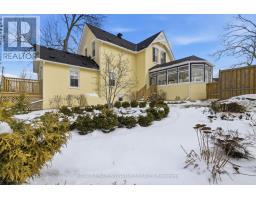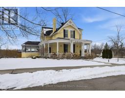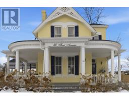 This beautifully preserved circa 1880 century home is set on a prominent corner lot along one of the town's most picturesque streets. Offering over 3,200 sq ft, the property balances architectural character with thoughtful modern upgrades, including a newer roof and furnace. Exceptional curb appeal is defined by extensive gardens, a wraparound porch, decorative trim, and classic shutters that speak to the craftsmanship of its era. Inside, a grand foyer introduces a sweeping curved staircase accented by ornate millwork and soaring ceilings. The main floor features 10-foot ceilings and an abundance of original details, including oversized baseboards, period trim, tall windows with transoms, chair rails, and original cold air returns. Six well-defined living spaces offer both elegance and versatility: a formal living room with gas fireplace insert, central dining room, parlour with French doors, warm and inviting kitchen, private office with adjacent bathroom, and a beautifully rebuilt conservatory with original stained glass transoms providing a peaceful, light-filled retreat. The kitchen is anchored by a centre island with granite countertops and stainless steel appliances, and the main-floor office is ideal for a home-based workspace. Upstairs, 9.5-foot ceilings continue the sense of openness. A generous landing offers space for a reading nook. The principal bedroom features an electric fireplace, large walk-in closet with custom organizers, and excellent natural light. Two additional bedrooms are generously sized and complemented by a 3-piece bath with soaker tub and a second 3-piece bath with shower.The dry basement with 8' ceilings provides ample storage space, a washer, dryer, hot water heater (rented), owned water softener, and utility sink. Homes of this calibre and character rarely come to market. A true Uxbridge landmark, offering timeless beauty, thoughtful updates, and a setting that feels both special and welcoming. (id:61594)