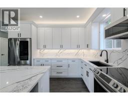 WOW! Stunning, new home in highly sought-after Port Dover, just steps from Black Creek! This home offers versatility for today’s lifestyle. Appreciate the private double-wide driveway, accommodating up to 6 vehicles, & the stamped concrete front porch. A spacious foyer features double mirrored closets, 9-foot ceilings, & oak hardwood flooring that flows throughout the home. Located off the foyer is a laundry room with quartz countertops. On the opposite side, is a beautifully finished 4-piece bath with textured tile floors, quartz vanity & tile shower surround. The open-concept main floor is filled with natural light & offers beautiful canal views. The custom kitchen is a showstopper, boasting a 5-seat island, quartz counters & backsplash, under-mount lighting, dovetail soft-close cabinetry, stainless steel appliances & pantry. Additional features include pot lights & crown molding that continue into the living area, creating a seamless flow. Upstairs, enjoy a versatile space with 12-foot vaulted ceilings, recessed lighting, wet bar with quartz counters & bar fridge—perfect for entertaining, working from home, or relaxing. 7-foot sliding doors lead to a covered Dura-deck with glass railings, offering breathtaking views of the canal. There are 3 spacious bedrooms, including a primary suite, & a luxurious 5-piece bathroom with double quartz vanity & textured tile flooring. On the lower level, a landing leads to the back of the home & a flexible storage/utility room with a 3-piece bath rough-in, secondary laundry option & mechanical systems. This space offers great potential for a variety of future uses. A 1.5 car garage is just off this space featuring drain and water supply line rough-ins. Located just minutes from the heart of Port Dover, this home offers a peaceful retreat with easy access to local amenities. The owner may consider selling the land behind the home on the canal providing the possibility to add some green-space, a docking spot & access to Lake Erie! (id:61594)