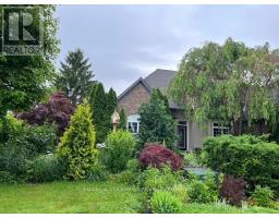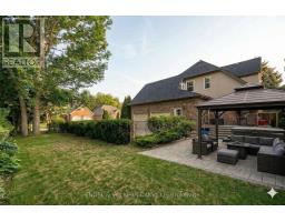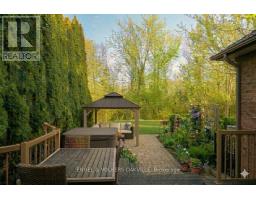 Tucked away on a quiet cul-de-sac, just a short stroll from the Historic Commons and downtown, this exceptional custom-built Lifestyle Homes residence offers refined living in a truly private setting. Built with the highest quality materials and thoughtful design throughout, this impressive two-storey home features 5 bedrooms and 4 bathrooms, ideal for both everyday living and entertaining.A stamped concrete driveway and patio lead to a large, private side garden, complete with a multi-zoned irrigation system, hot tub, and gazebo-perfect for relaxing or hosting outdoor gatherings. Backing onto a wooded area, the property offers an uncommon level of privacy rarely found so close to town.Inside, a dramatic Great Room with fireplace sets the tone for the home's open and airy feel, complemented by gleaming hardwood floors throughout. The well-appointed galley-style kitchen features granite countertops, high-end appliances, and a bright eat-in area, seamlessly connecting to the inviting family room with a second fireplace and large windows that flood the space with natural light.The main-floor primary suite is a private retreat, offering vaulted ceilings, large windows, a walk-in closet, and a spa-inspired ensuite with air tub. Upstairs, two additional bedroom suites with fireplaces provide comfort and privacy for family or guests.The fully finished lower level extends the living space with two more bedrooms and a recreation room, ideal for guests, hobbies, or a home gym. A double car garage completes this outstanding property.A rare opportunity to enjoy custom craftsmanship, privacy, and walkability-this home delivers an exceptional lifestyle in one of the area's most desirable locations. (id:61594)